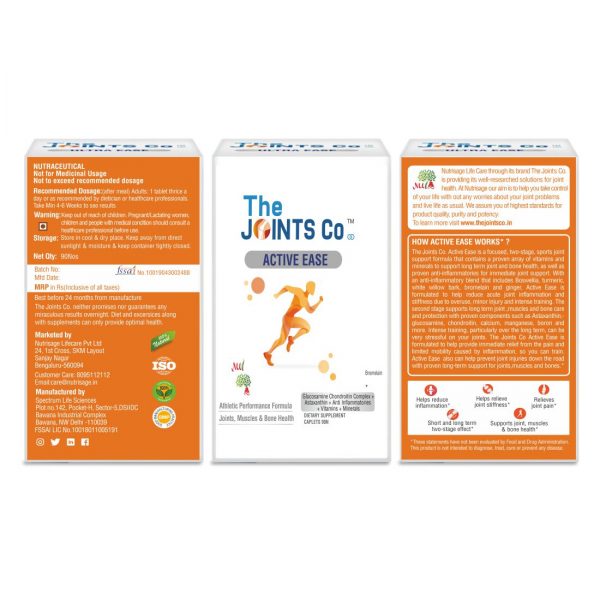 Are you a fitness enthusiast? Take better care of your joints and muscles with The Joints Co. Active Ease. This is a potent and effective solution that is formulated from natural bioactives that instantly reduces inflammation and supports muscle fatigue, while giving joints,muscles & bone support.Works in 2 Stages Short term relief & prepares you for long term good joints healt