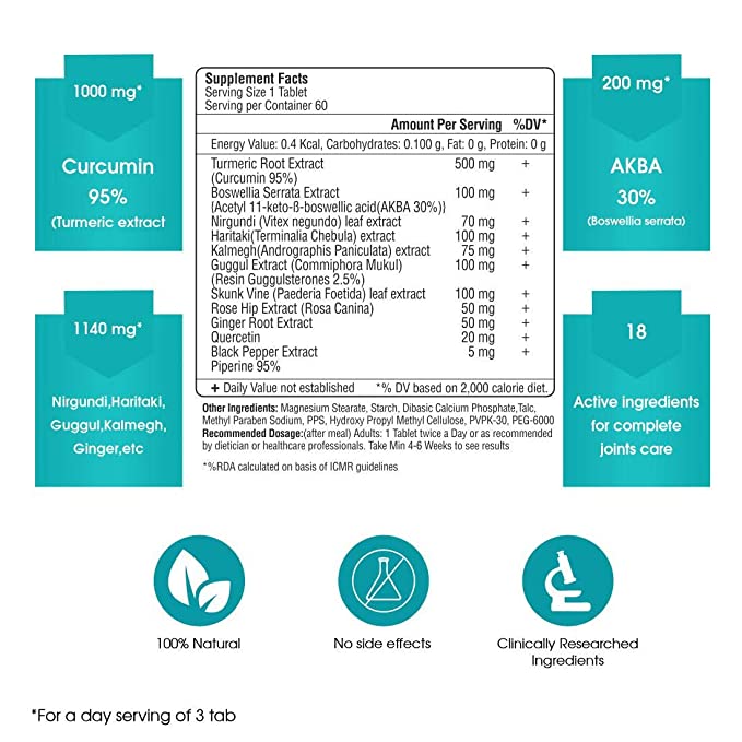 The Joints Co Advanced Herbs Plus with 11 Potent Ayurvedic Herbs for Swollen ACL, Tendon, Ligament and Meniscus Injuries-Pack of 60 Tablets(1)
