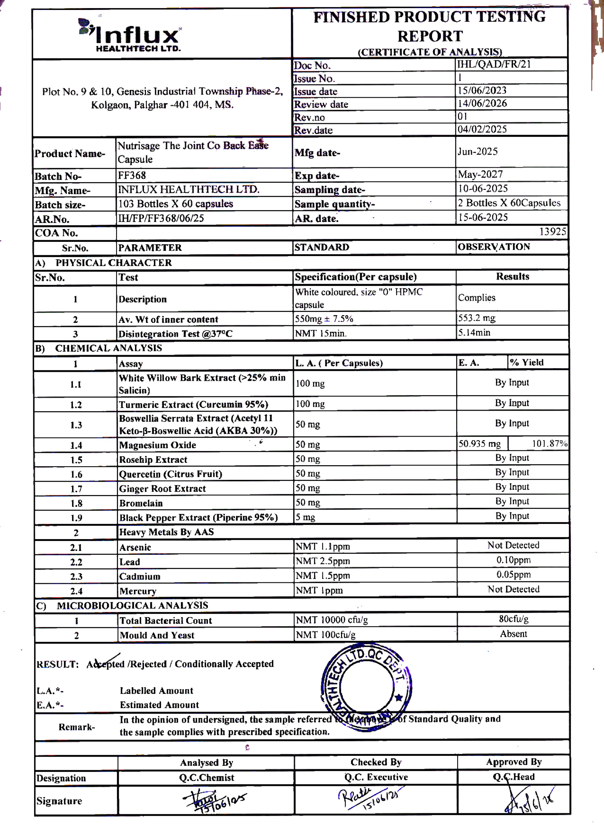 For Chronic conditions ,use this product along with Nutrisage Spine Disc Health Powder for 3 months and report back for review.*