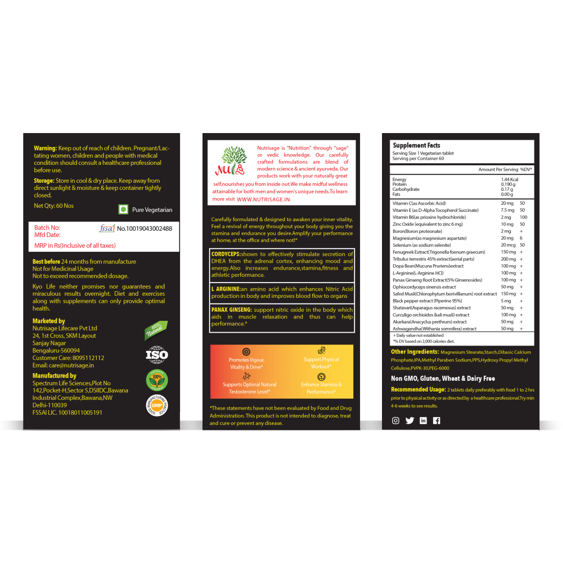 Nutrisage Men Health with Cordyceps,Ginseng,Maca root,Tribulus,Fenugreek,Safed Musli, L Arginine -Testosterone Booster for Men | Enhances Stamina, Performance,Drive & Mood-60 Tab