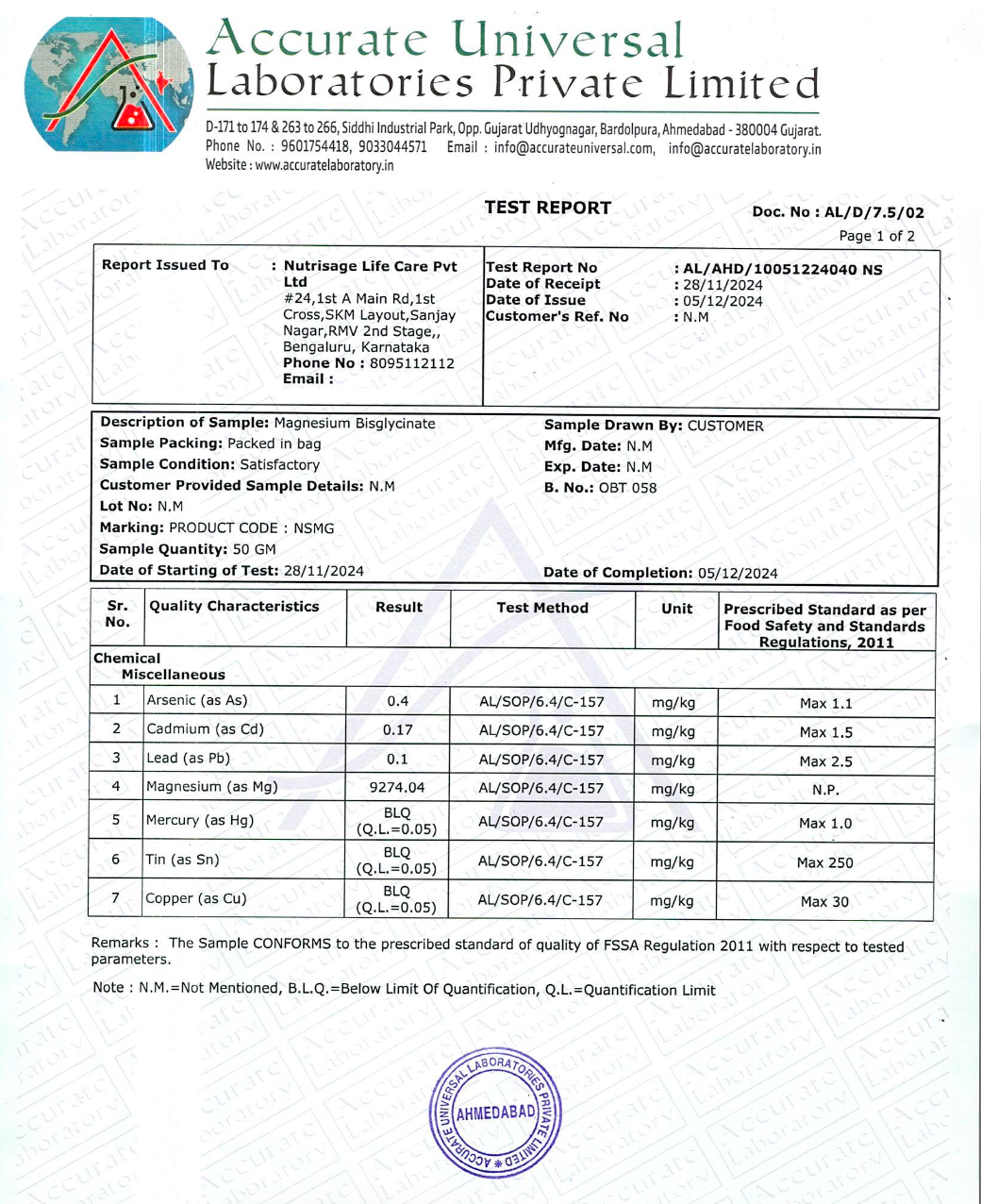 Magnesium deficiency can lead to a range of symptoms and health issues, as magnesium plays a key role in muscle function, nerve health, and energy production. Early signs of deficiency include muscle cramps, fatigue, irritability, and sleep disturbances. More severe or prolonged deficiency may result in muscle weakness, tremors, irregular heartbeats, high blood pressure, and even mood changes like anxiety and depression. Magnesium is also crucial for bone health, and insufficient levels can contribute to osteoporosis over time. Furthermore, low magnesium levels can impair blood sugar regulation and increase the risk of type 2 diabetes and cardiovascular issues. Magnesium is essential for over 300 biochemical reactions in the body, so maintaining adequate levels is vital for overall health, immune function, and mental well-being.So If you are one who suffers from any of anove mentioned conditions,you should definitely try Nutrisage High Absorption Magnesium BisGlycinate .