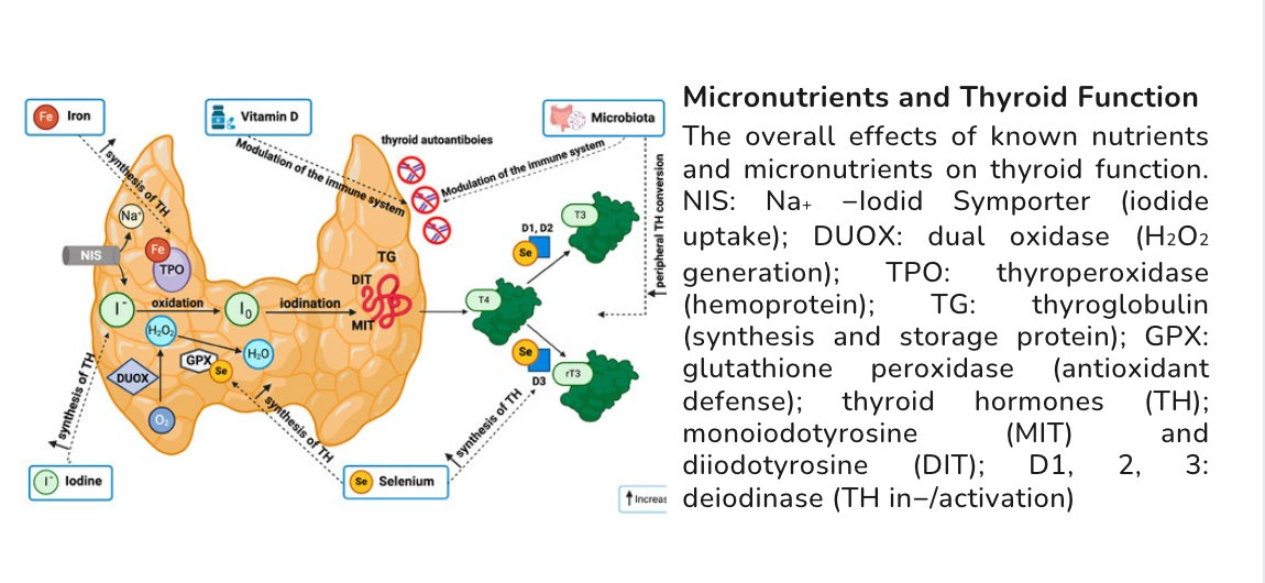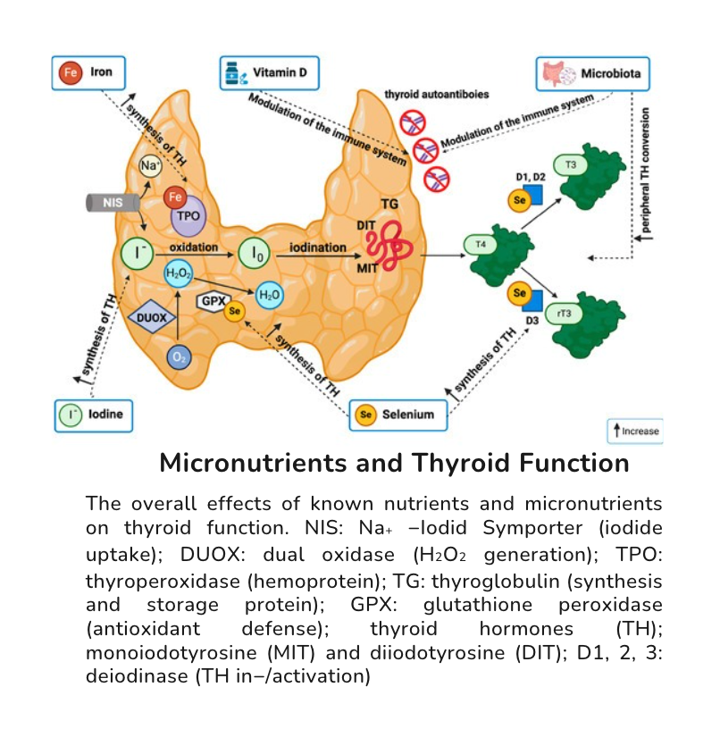Manganese supports thyroid hormone production and acts as an antioxidant. It protects thyroid cells from oxidative damage and ensures efficient hormone synthesis.