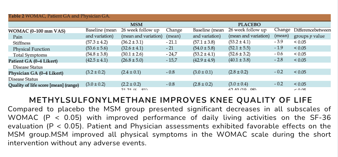 Methylsulfonylmethane (MSM) is a sulfur-containing compound with potent anti-inflammatory and antioxidant properties, making it beneficial for spine and disc health. Its ability to reduce inflammation, which is often a significant factor in spine and disc-related pain. Inflammation can damage spinal tissues and accelerate degenerative disc conditions. MSM helps by lowering levels of inflammatory cytokines, reducing pain, stiffness, and discomfort associated with spinal issues.MSM also provides sulfur, an essential component in collagen synthesis.By supporting collagen production, MSM helps maintain the strength and flexibility of these discs, reducing the risk of degeneration.