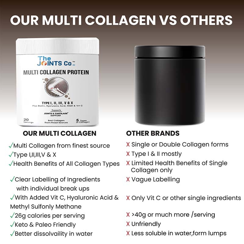 The Joints Co. Multi Collagen Type I,II,III,V & X Protein Powder with MSM,Vitamin C & 19 amino acids - Supports Joints,Bones, Skin and Nails 200 gm