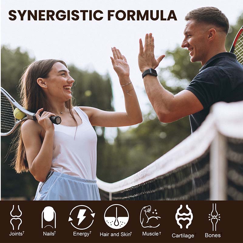 By bringing these types together, this formula delivers comprehensive joint support — reducing stiffness, improving flexibility, and promoting long-term joint health — while still giving you added benefits for skin, hair, and nails.