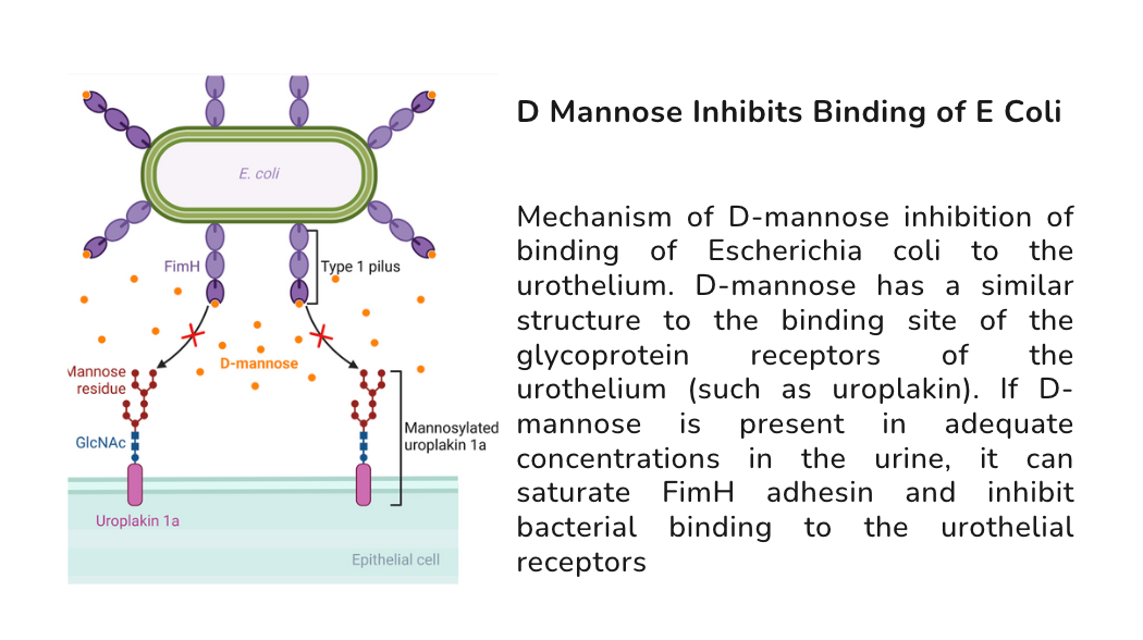 D-Mannose is a natural sugar that helps in urinary tract infections (UTIs) by preventing harmful bacteria, especially E. coli, from sticking to the bladder wall. Instead, it binds to the bacteria and flushes them out naturally through urine, reducing infection and discomfort. Unlike antibiotics, it doesn’t kill bacteria directly, so it avoids resistance issues and supports gut health. Regular use may also help lower the chances of recurrent UTIs, making it a gentle and effective option for urinary health.